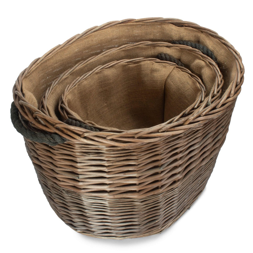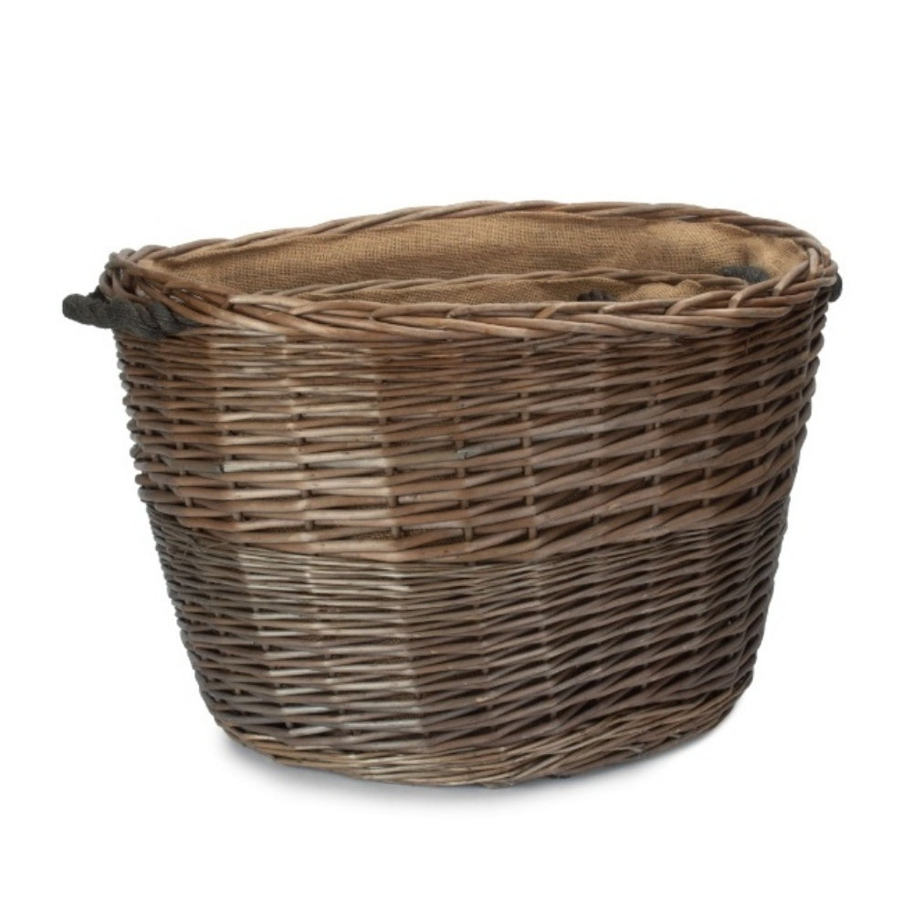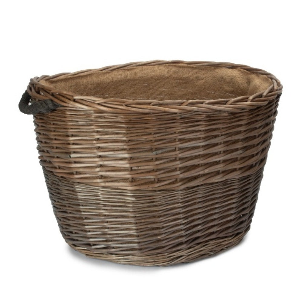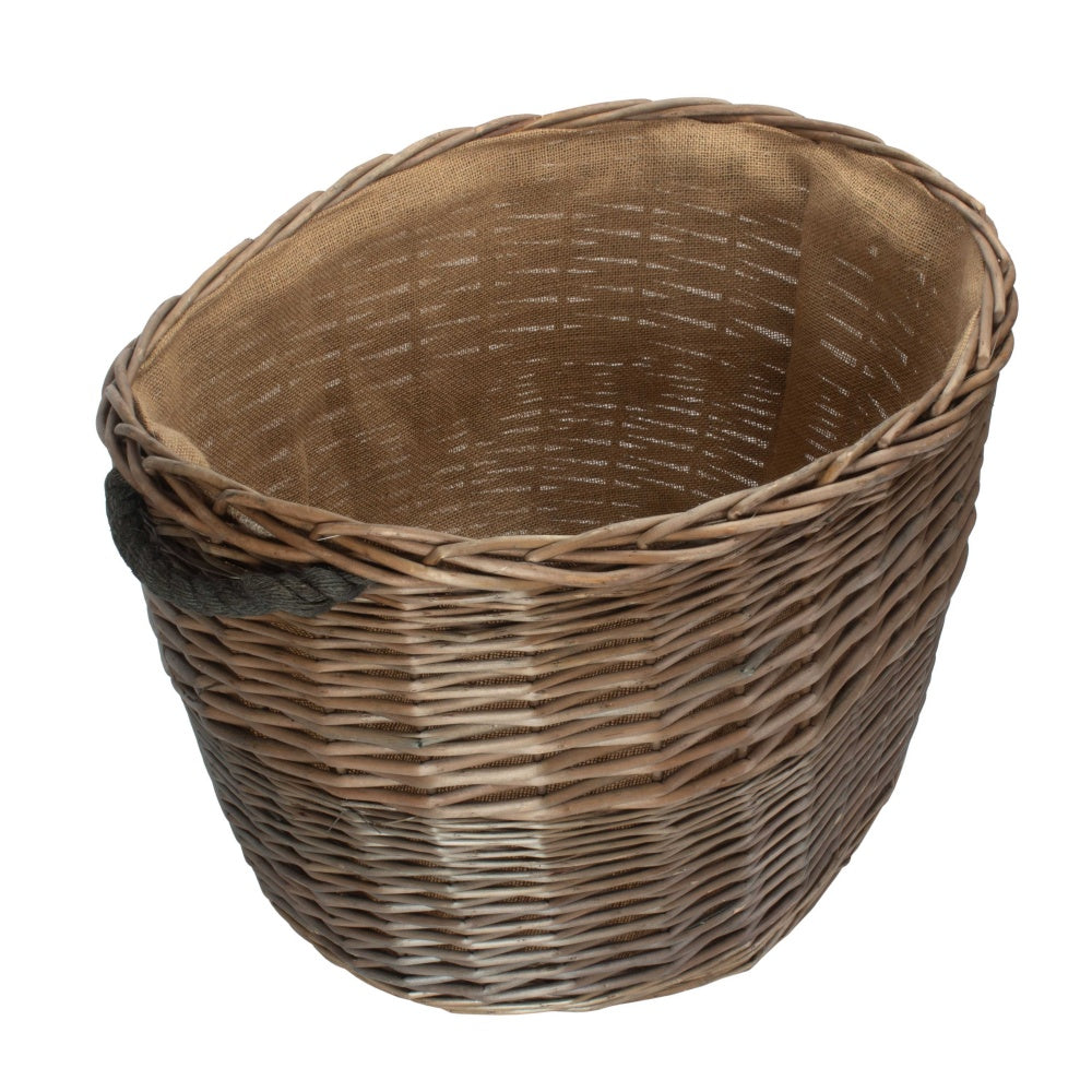 Oval Hessian Lined Wicker Log Basket